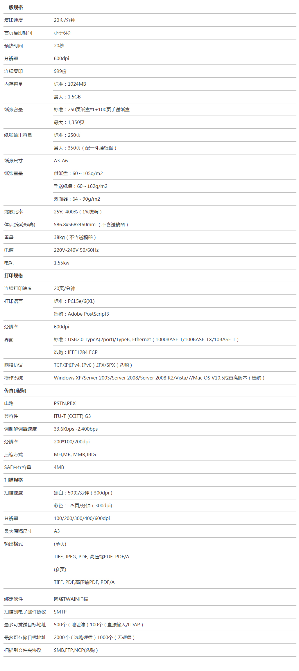 MP 2001SP规格: