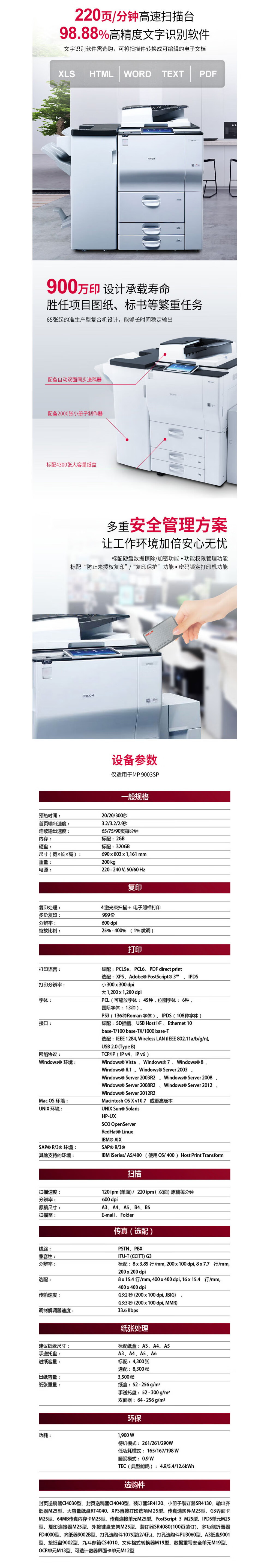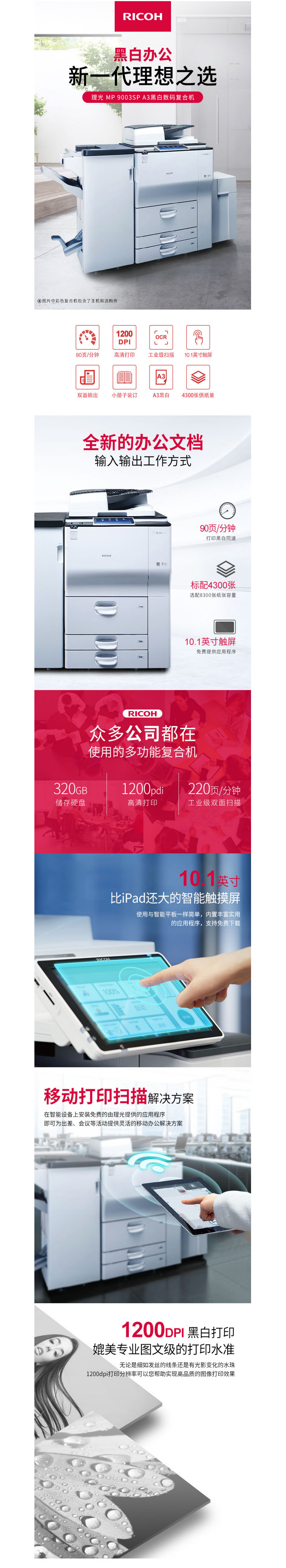 理光(RICOH)MP9003SP A3高速黑白激光数码复合机打印机复印扫描大型商务办公工程复印机 主机+输稿器+2000页小册子装订器 自营